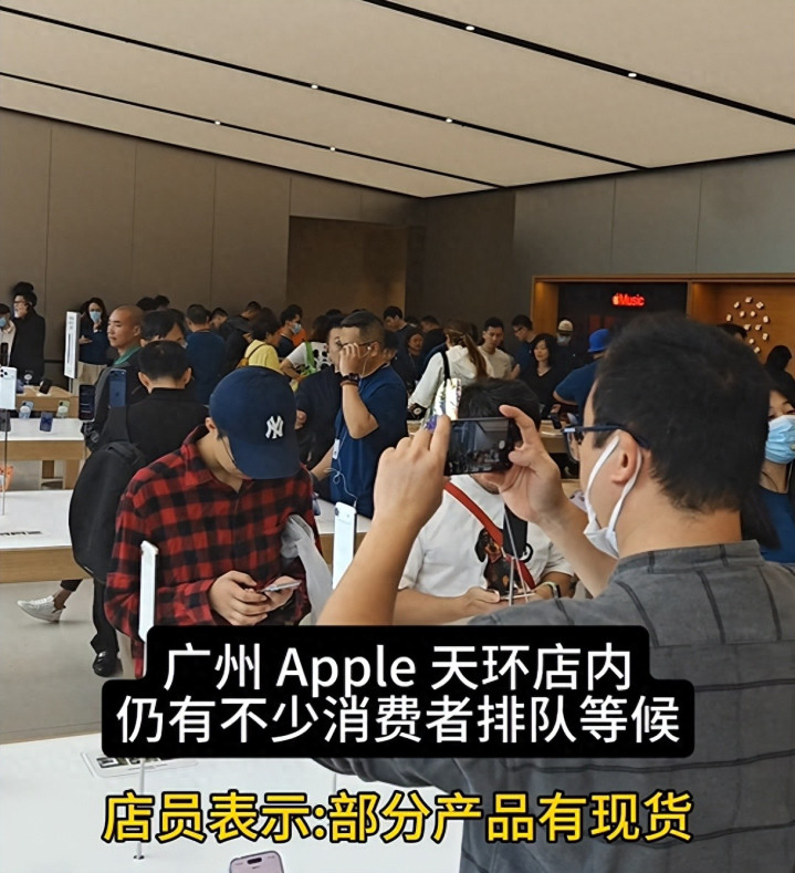 10月22日当天中午,记者看到广州 Apple天环店内有不少消费者排队等候,许多人一进门就询问 iPhone Air的展示区域,想要亲身体验这款机型的超薄手感,还有不少人当场拿出自己的手机,与 iPhone Air进行直观对比。